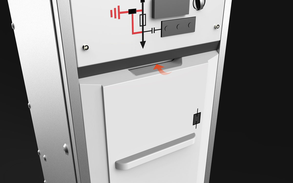- 設計靈感溯源:造型提取自 “數(shù)據(jù)中心機柜” 的極簡秩序形態(tài),整體采用方正切面 + 直角邊框過渡,弱化設備厚重感,傳遞 “高效、可控” 的工業(yè)認知,讓環(huán)網(wǎng)柜成為智能電網(wǎng)的 “數(shù)字堡壘”;