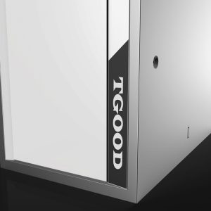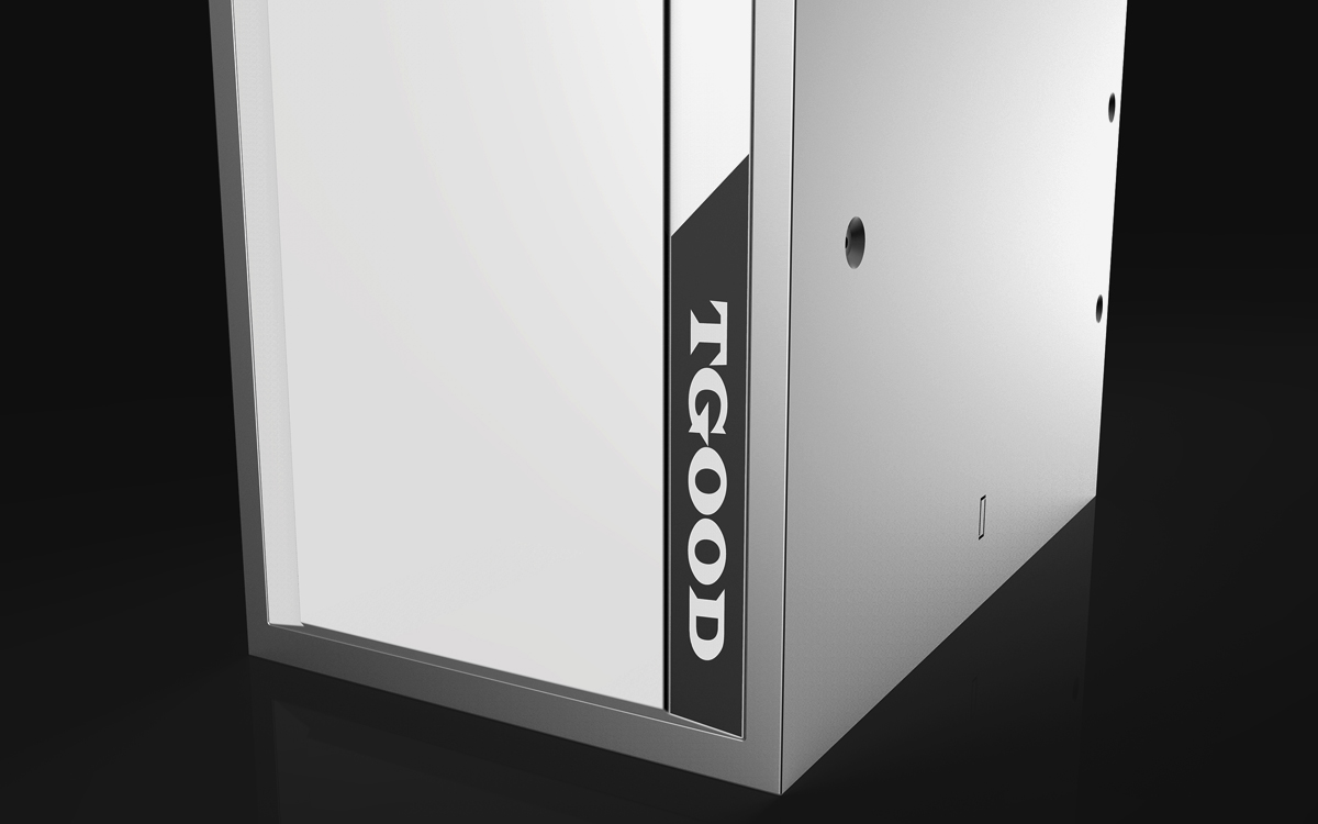 - 細節(jié)人性化設計:面板采用平整無拼接設計,避免積灰積水,適配工業(yè)環(huán)境清潔需求;操作區(qū)的壓力表與接線端子采用對稱布局,既保障操作便捷性又形成秩序肌理;品牌標識 “TGOOD” 醒目置于底部黑色飾條,強化品牌認知的同時提升視覺精致度;檢修門采用隱藏式合頁設計,既保障設備安全又不破壞整體極簡質感。